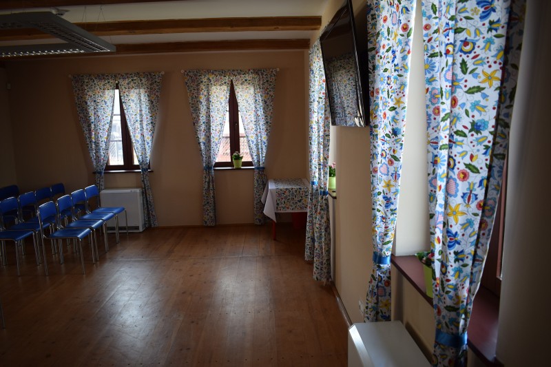 Sala konferencyjna przygotowana jest do prowadzenia w niej szkoleń, konferencji i warsztatów do 70 osób (w ustawieniu kinowym). Wyposażona jest w sprzęt multimedialny (rzutnik, ekran).